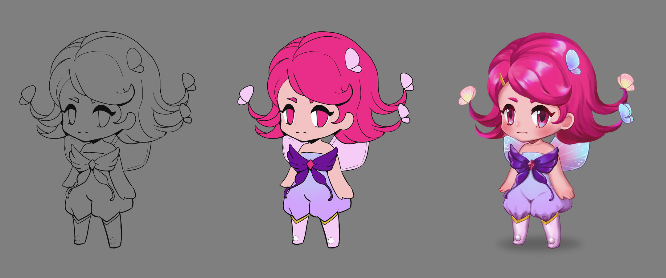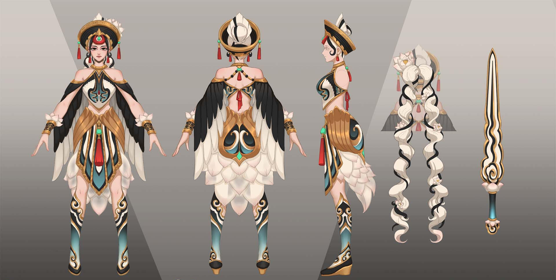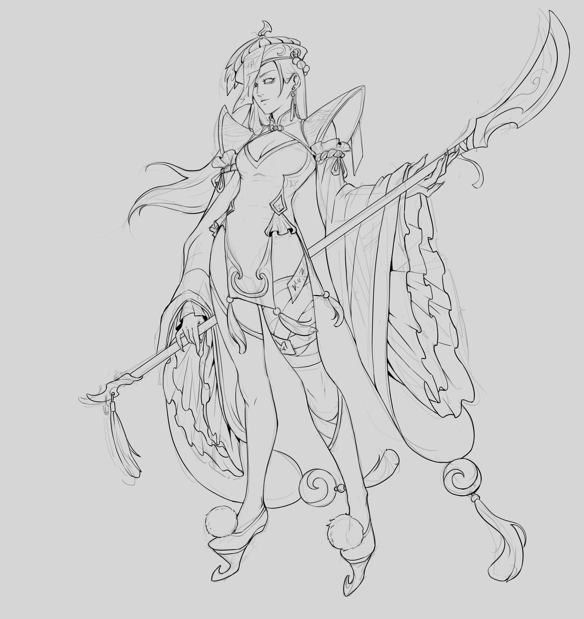 The concept commission price includes front/back views and basic details, from sketch to full render. Additional concepts (weapons, costume sheets, etc.) will be charged separately based on the price list above.